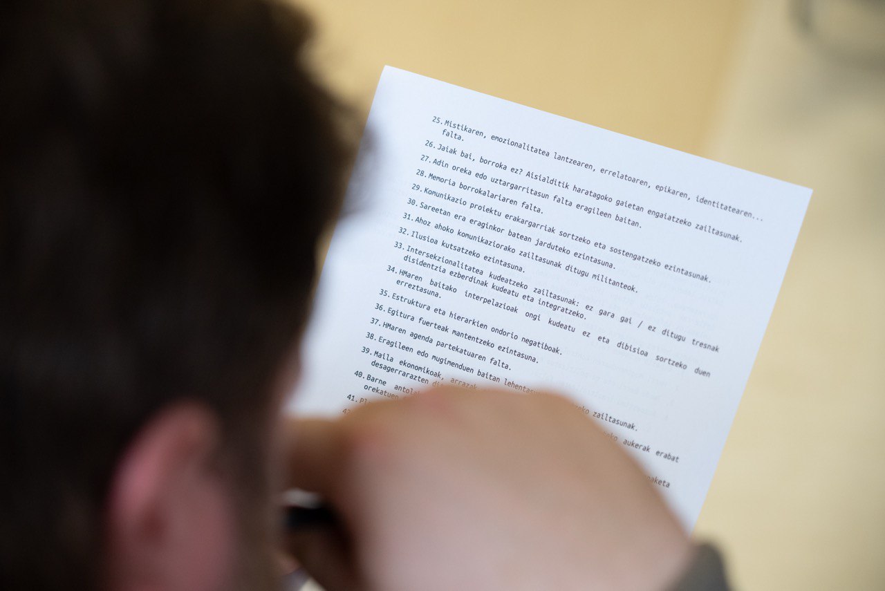 Hala, abenduaren 6ko goizean Jarraipen Batzorde Zabaleko bilkura egin genuen, Euskal Herriko hainbat HMri egindakoaren berri emateko eta, bide batez, euren ekarpenak jasotzeko. Bilerako gai nagusiak izan ziren proiektuan emandako aurrera urratsen aurkezpena egitea eta hurrengo fasean askatzen saiatuko garen korapiloen arteko leheneste ariketa. Eskerrak eman nahi dizkiegu kolektibo horien ordezkariei, egindako ekarpen interesgarriak prozesurako zinez abesgarriak izan ziren eta.